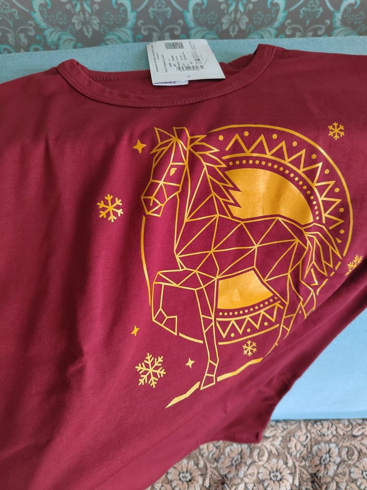 Новогоднее платье-туника для девочки с Лошадью — символом 2026 года — стильная и удобная модель, созданная для праздничного настроения и повседневного комфорта. Изготовленное из мягкого трикотажа 100% хлопок плотностью 160 г/м², платье приятно к телу, дышит и подходит для чувствительной детской кожи. Свободный силуэт оверсайз не сковывает движений и позволяет ребёнку чувствовать себя свободно во время игр, прогулок и домашних занятий. Трикотаж легко тянется, сохраняя форму и аккуратный внешний вид даже после многократных стирок. Главный акцент модели — яркий принт Лошади, выполненный в современном графическом стиле, который подчёркивает новогоднюю тематику и делает платье праздничным и уникальным. Классическая круглая горловина с мягкой окантовкой обеспечивает комфорт в носке и не растягивается. Платье можно носить как тунику с леггинсами или как самостоятельное платье. Это универсальная модель для праздников, утренников, новогодних фотографий и уютных семейных вечеров. Она дарит ребёнку тепло, удобство и праздничную атмосферу.